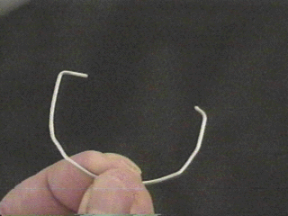 I spent about 10 minutes the other day reconstructing a home-made 5th-string capo that I had originally made back in the 60's. It's a little hard to describe, but with the above pictures it should be reasonably understandable. I made it from nothing more than a paper clip!! (The larger of the 2 common sizes) -- I first straightened it by hand, then, using a pair of needle-nose pliers, I bent one end at a 90 degree angle -- just long enough to come over the edge of the neck and cover the 5th string. Then, I (by hand) bent the rest of the clip to approximate the curve of the back of the neck, leaving the other end sticking up way beyond the fingerboard by the 1st string. Note that the wire is not completely in contact with the neck all the way around. This allows for some springyness, which is what holds the capo in place. I pressed the wire in as tight as possible, to conform to the shape of the neck, and then bent the other end (1st-string side) over the edge of the fingerboard. Then, using the needle-nose pliers again, I bent that end up very (very very) slightly, just a tiny bit in from the edge, (in the picture, you can see just the hint of an upturn) and then cut the wire right at that bend. This end is very short and the upward lift is almost undetectable. The end has to be small enough so that it doesn't interfere with playing the 1st string. The purpose of the slight upward bend is to facilitate sliding it around the neck without scratching. I filed both ends smooth and slightly rounded. Bill Palmer suggested covering the wire with a piece of "spaghetti" insulation to prevent it from indenting the back of the neck. As I recall, my original capo (~35 years ago) did indent the back of the neck slightly if left in place for long periods of time (days or weeks). This should eliminate the problem. To use this capo, all I do is place the flat end over the 5th string and slide the other end around the neck, catching the tiny end over the 1st-string edge of the fingerboard. It took a little experimenting to get the shape and length right (it actually took me 2 paper clips), but even with all that waste it's still rather inexpensive. The total time involved, including going down to the basement to find my pliers and a file, was less than 10 minutes.